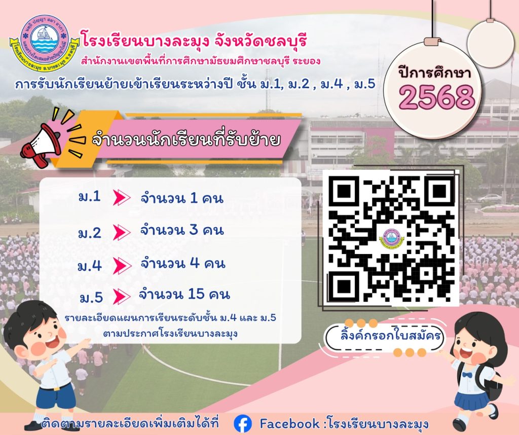 กรอกเอกสารรับย้ายระหว่างปี ปีการศึกษา 2568 คลิก!