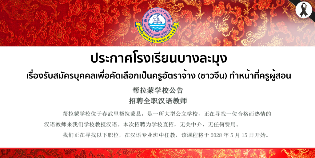 กลุ่มบริหารงานกลุ่มบริหารงานบุคคล การเงินและสินทรัพย์ ประกาศโรงเรียนบางละมุง เรื่องรับสมัครบุคคลเพื่อคัดเลือกเป็นครูอัตราจ้าง (ชาวจีน) ทำหน้าที่ครูผู้สอน 24 กุมภาพันธ์ 2026 admin ดาวน์โหลดเอกสาร เพิ่มเติม